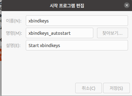 4. 시작프로그램에 xbindkeys 설정