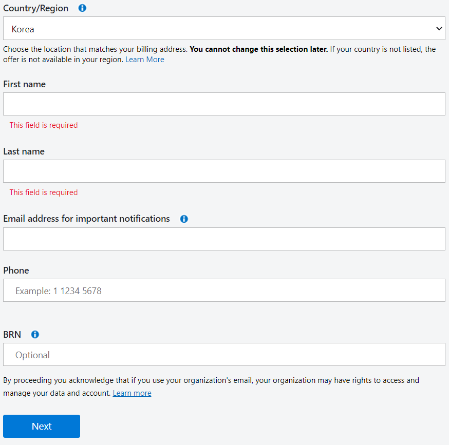 학생용 Azure를 사용하려면 신용카드 없이 12개월 내 사용할 수 있는 Azure 크레딧 및 일부 체험 서비스를 사용할 수 있다. 학위를 수여하는 공인된 2년제 또는 4년제 교육기관에서 STEM(Science, Technology, Engineering, Math) 관련 분야를 공부하는 18세 이상의 정규 학생임을 확인해야 한다. (공대, 자연대 등을 포함하는 말인 것 같은데 아마 상경쪽, 그 외에도 신청가능할듯?)