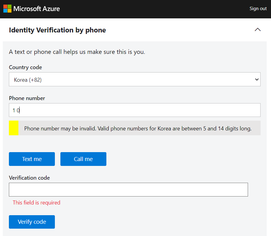 국가 코드를 대한민국(+82)로 맞추고 핸드폰 번호를 입력한다.