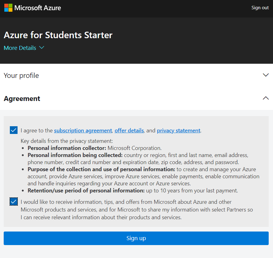 Azure - Sign up